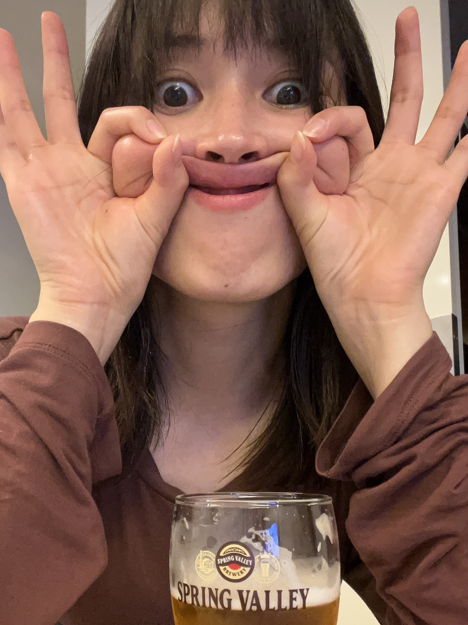 数口アルコールが入ったのか、ご機嫌な様子で変顔ショットを公開。